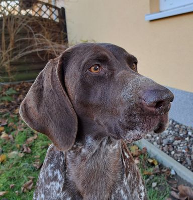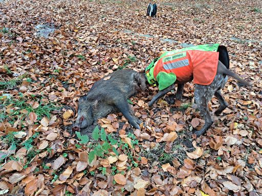 Sie arbeitet sehr führerbezogen und hält regelmäßig Kontakt zu mir, dass bei den Drückjagden vom großem Vorteil ist. Elsa jagt sicht- und fährtenlaut.